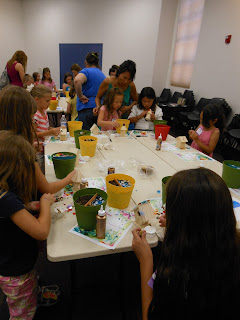 The kids had the chance to pick out their fairy house and flower pot while waiting for everyone to arrive and check in. I had a set up some fairy materials (series, non-fiction, media) for them to browse through and check out.